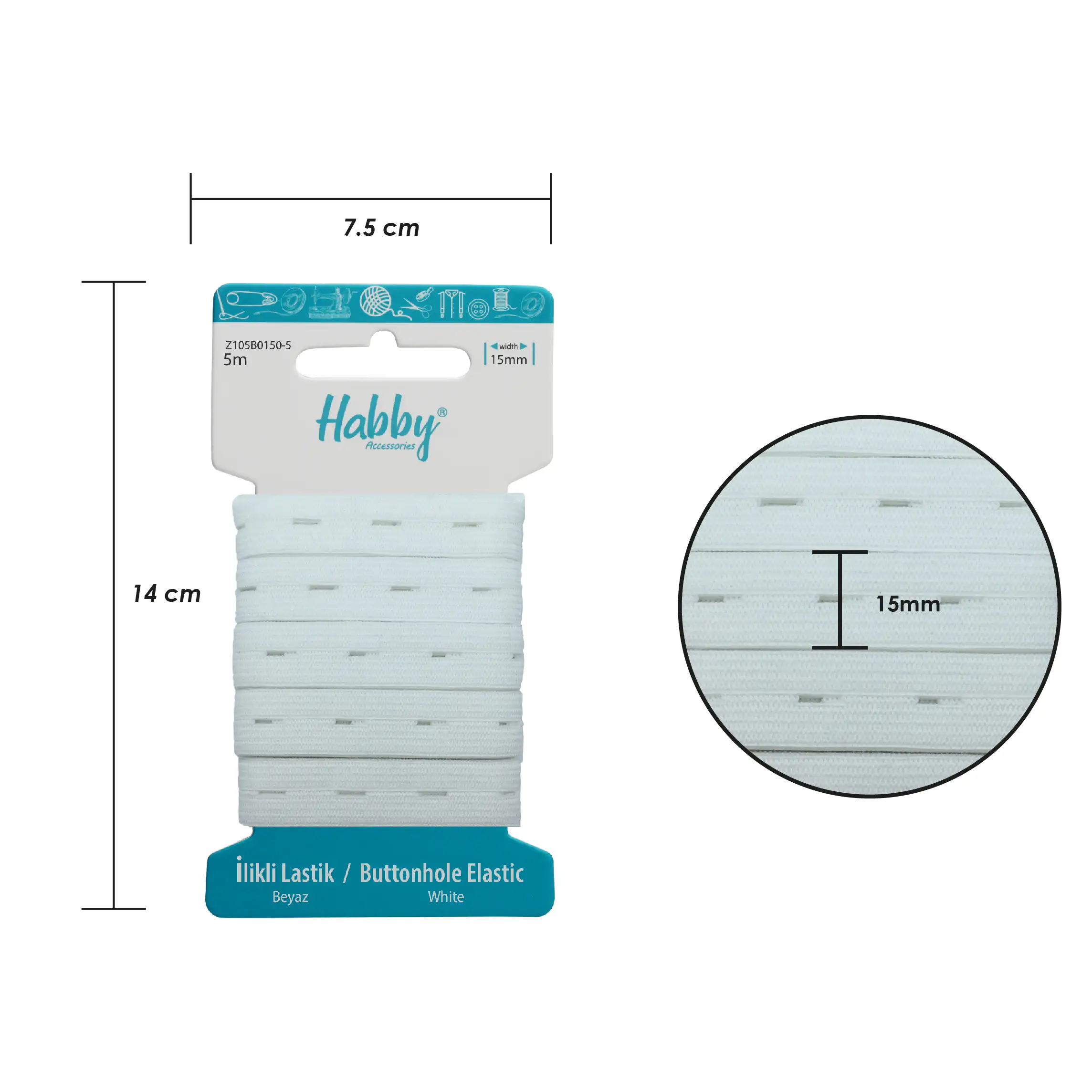 1.5cm ilikli lastik, dayanıklılığı ve esnekliği ile öne çıkan, çok yönlü kullanım sunan bir tekstil malzemesidir. Yüksek kaliteli malzemelerden üretilen bu lastikler, uzun ömürlü yapısıyla dikkat çeker. 1.5cm genişliğindeki ilikli lastikler, özellikle giysi üretiminde, özellikle bel bantları, manşetler ve bacak bantları gibi esneklik ve ayarlanabilirlik gerektiren alanlarda tercih edilmektedir. İlikli tasarımı sayesinde pratik ve kullanışlı bir çözüm sunar.